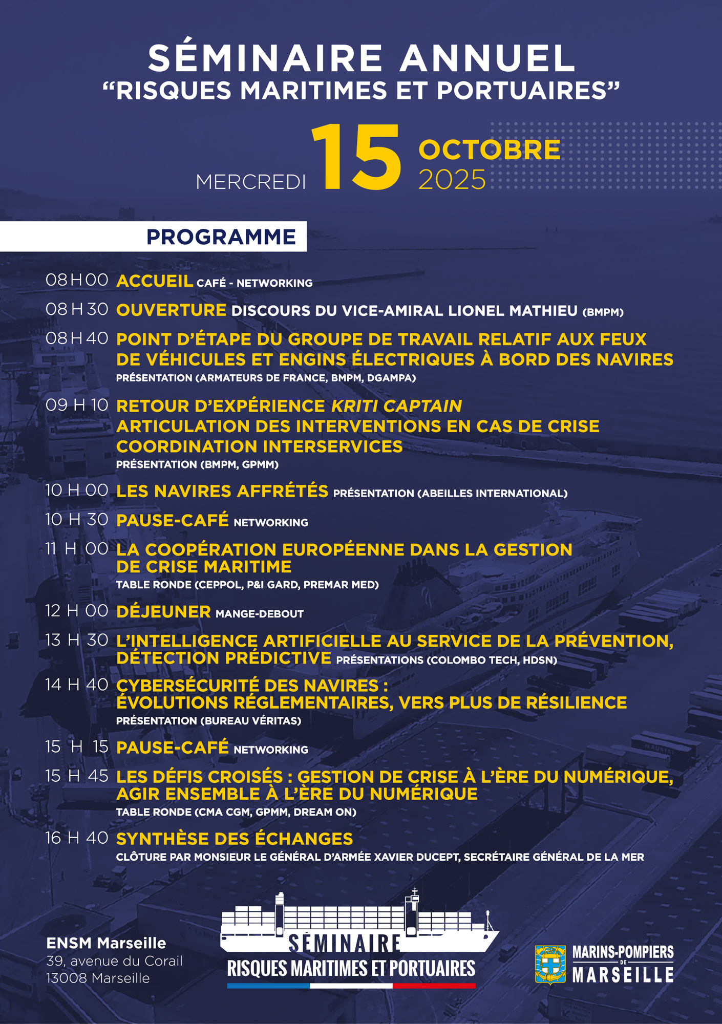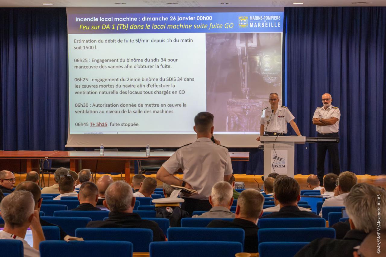 Le 15 octobre 2025, le Bataillon de marins-pompiers de Marseille (BMPM) a réuni, à l’École nationale supérieure maritime (ENSM) de Marseille, plus de 150 acteurs civils et militaires à l’occasion de son quatrième séminaire annuel “Risques maritimes et portuaires”.